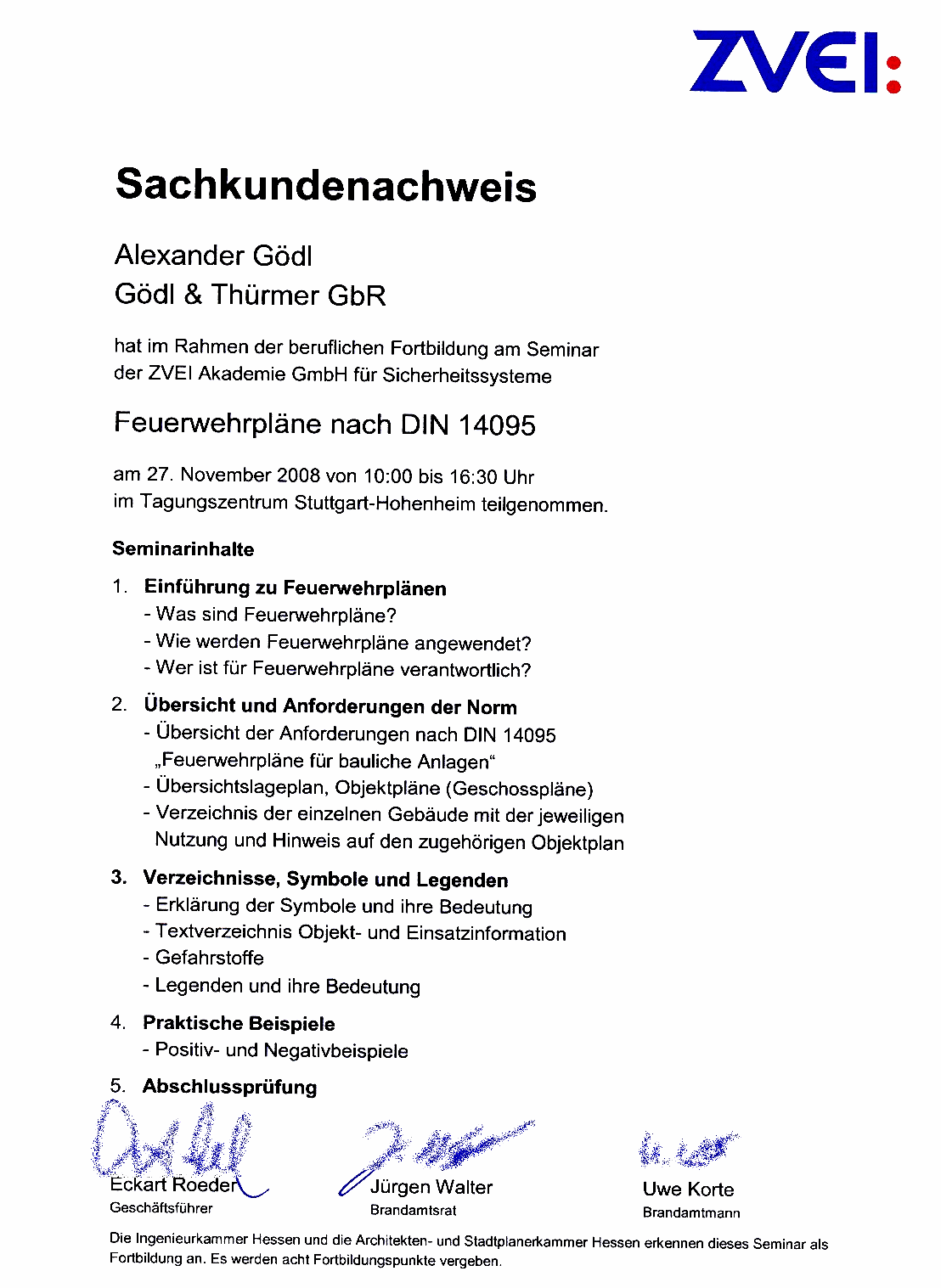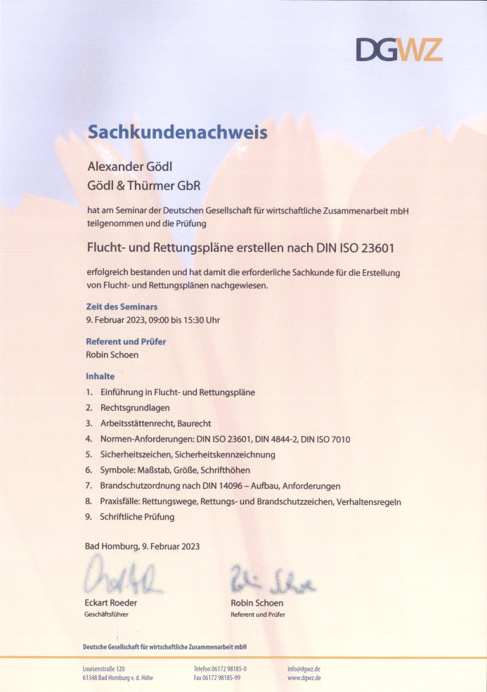 Damit Sie sichergehen können, daß Sie mit uns den geeigneten Partner für die Erstellung und/ oder Aktualisierung Ihrer Feuerwehrpläne haben, sehen sich nachfolgend unseren Sachkundenachweis.